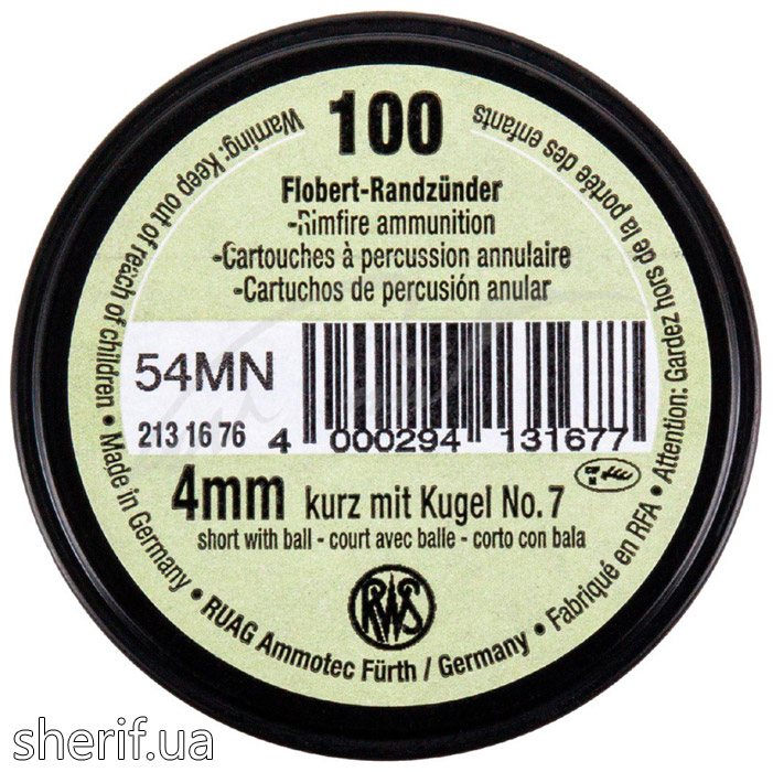 Cartridge RWS 4mm Flobert kurz (Short) refers to a "shortened" variety with a cylindrical gilIzu with a height of 6.6 mm (diameters of the flange and body are 6.1 mm and 4.65 mm, respectively). It is equipped with a spherical lead bullet with a diameter of 4.3 mm.