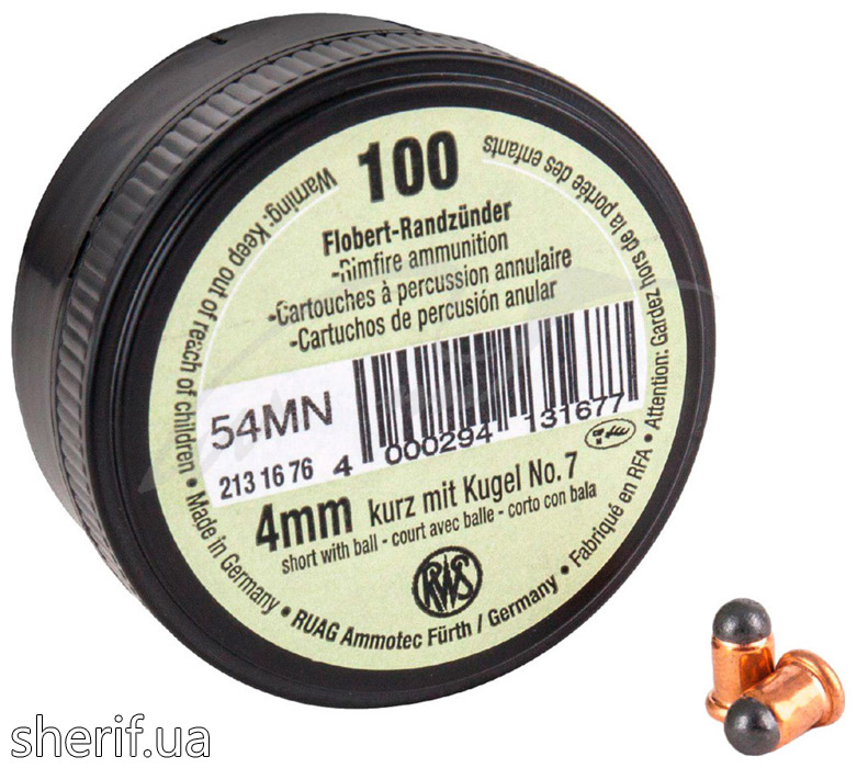 Cartridge RWS 4mm Flobert kurz (Short) refers to a "shortened" variety with a cylindrical gilIzu with a height of 6.6 mm (diameters of the flange and body are 6.1 mm and 4.65 mm, respectively). It is equipped with a spherical lead bullet with a diameter of 4.3 mm.