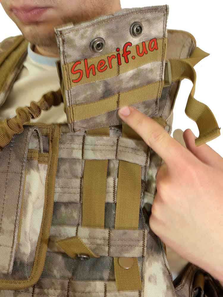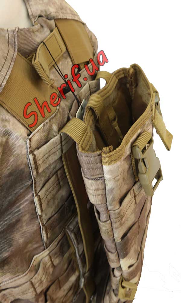 Running pockets are equipped with the "Molle" system: so you yourself can install the required number of pockets and their placement. The standard package includes 6 pockets for magazines, first aid kit, additionalExtra long pocket, document pocket, flashlight pocket and 2 mini pockets. Additionally, there is a pocket-backpack on the back, if desired, it can be removed or repositioned.