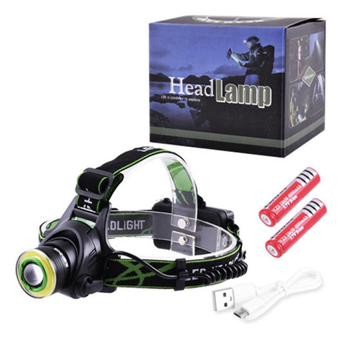 6677/T106-T6+COB Headlamp flashlight mikro USB 2x18650 zoom Box