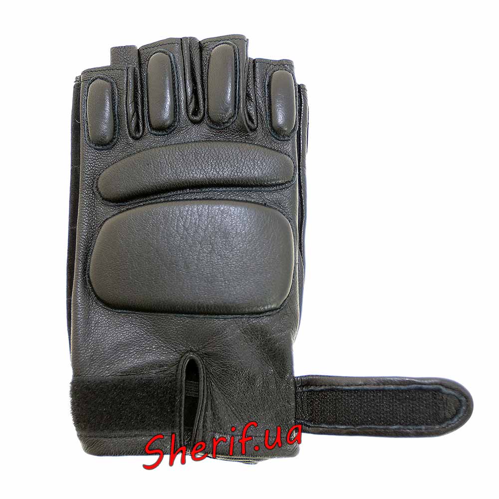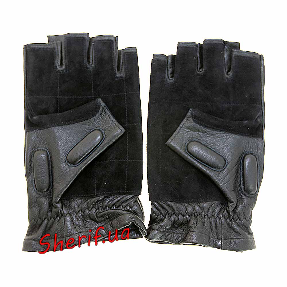 Gloves MIL-TEC leather without fingers biker without rivets Black