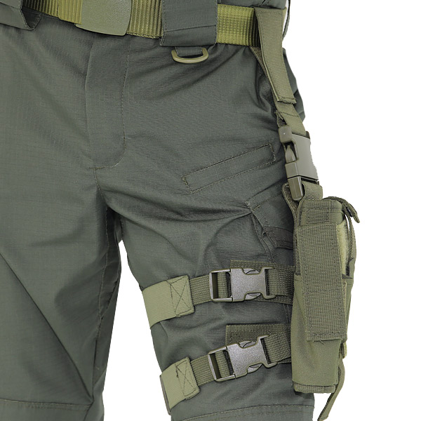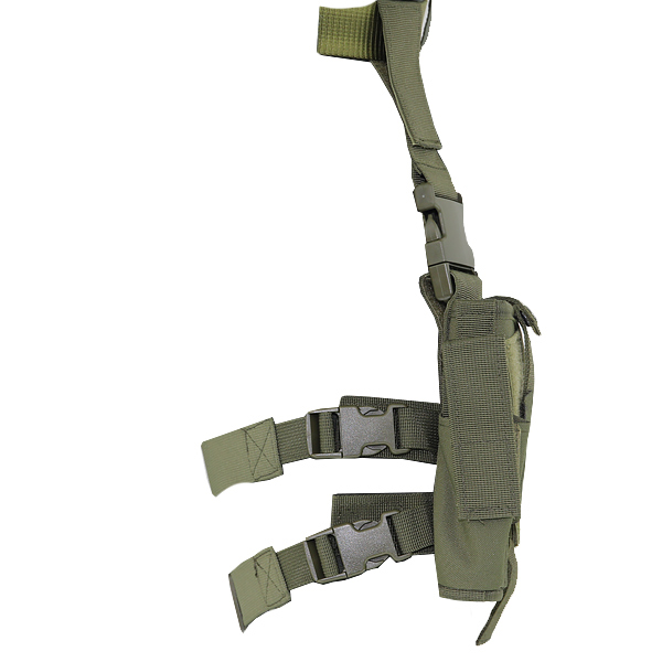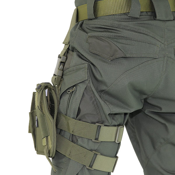 The presented leg holster is made by the German company Mil-Tec by Sturm, one of the leaders in the European market for products for the army and tourists. It has an olive color scheme that goes well with most other camouflages. It is universal, because it is suitable for wearing various brands and models of weapons. Designed for left-hand mounting, although it can also be used on the right-hand side.