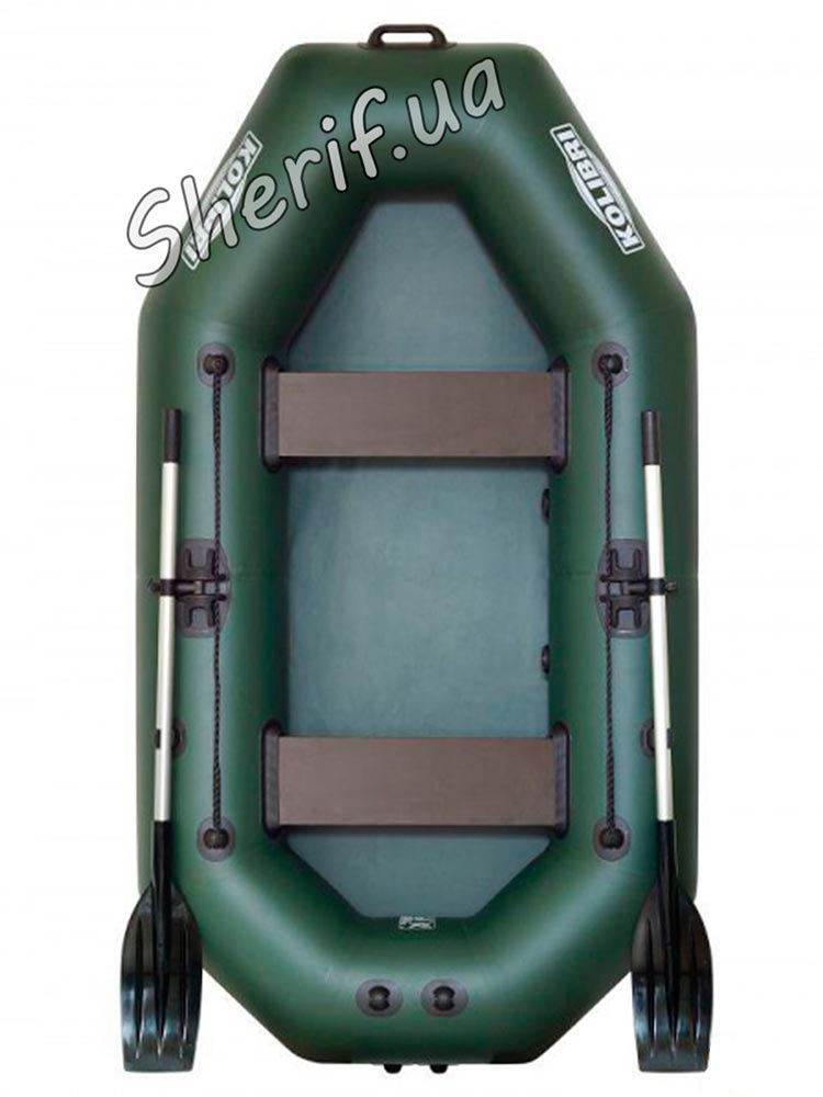 The boat is equipped with a movable seat, allowing the owner to adjust its position within a small range. The main advantages of small-sized boats are light weight, small packaged dimensions and quick assembly. For oars, a special mount is provided to facilitate rowing and reduce the load on the hands. Front and back Kolibri have handles for transportation. It is light and compact, does not take up much space in the trunk of a car and will be a nice addition on vacation.
