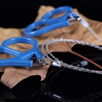 Фонарь-лазер синий YX-B015, ЗУ 220V, 2х16340, 5 насадок
