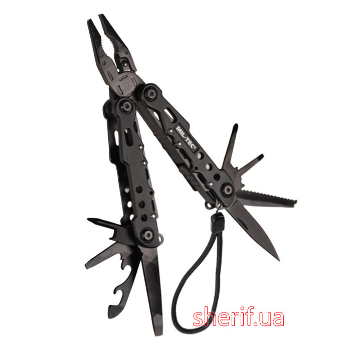 Multitool Black Cobra Mil-Tec 15406102 - a pocket workshop ideal for home, car and camping. This tool allows in the fieldyakh to engage in minor repairs of camping equipment, fishing tackle or sports accessories.