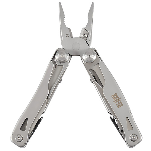 The model is made of two types of steel: the blade and scissors are made of 440 stainless steel, the rest of the tools and the handle are made of 420 steel.