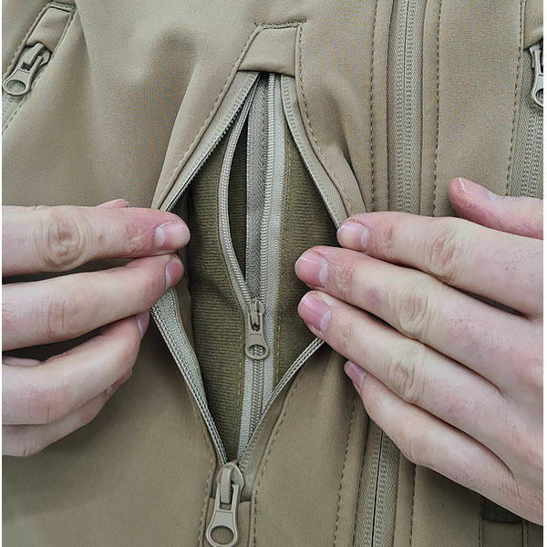 An important advantage of softs jacketshell Coyote by Mil-Tec is the presence of a large number of zippered pockets: