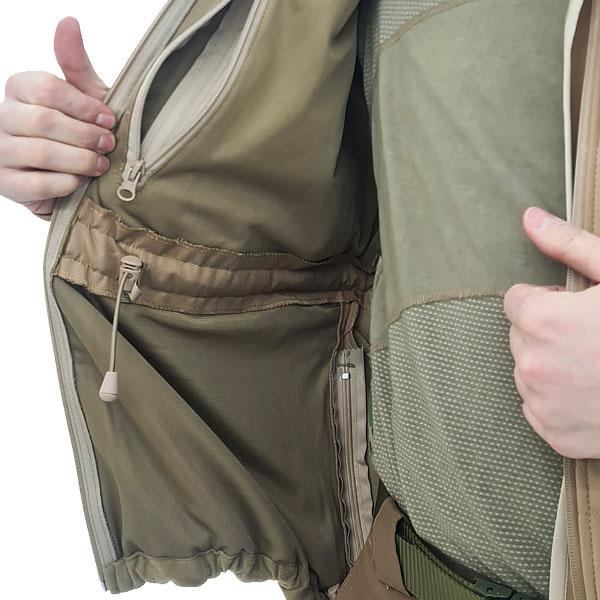 Fastens with a front zipper up to the chin. The waist is adjustable with a drawstring. For ease of movement, 2 side zippers are provided. Drawstring at the hem of the Combat Jacket provides additional wind protection. For the same purpose, the sleeves are equipped with Velcro and a thumb loop.