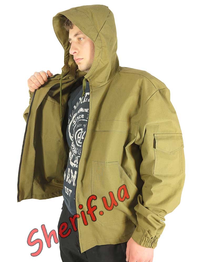 A storm jacket will help you withstand bad weather. The length of the jacket reaches about half of the thigh. The central fastener - lightning, the hood is regulated by laces and is in addition equipped with a small peak. The hem of the jacket and the waist are pulled together with laces, which will protect against the penetration of cold air, rubberized cuffs on the sleeves. Four capacious and voluminous pockets on the chest and stomach, one is located on the shoulder.