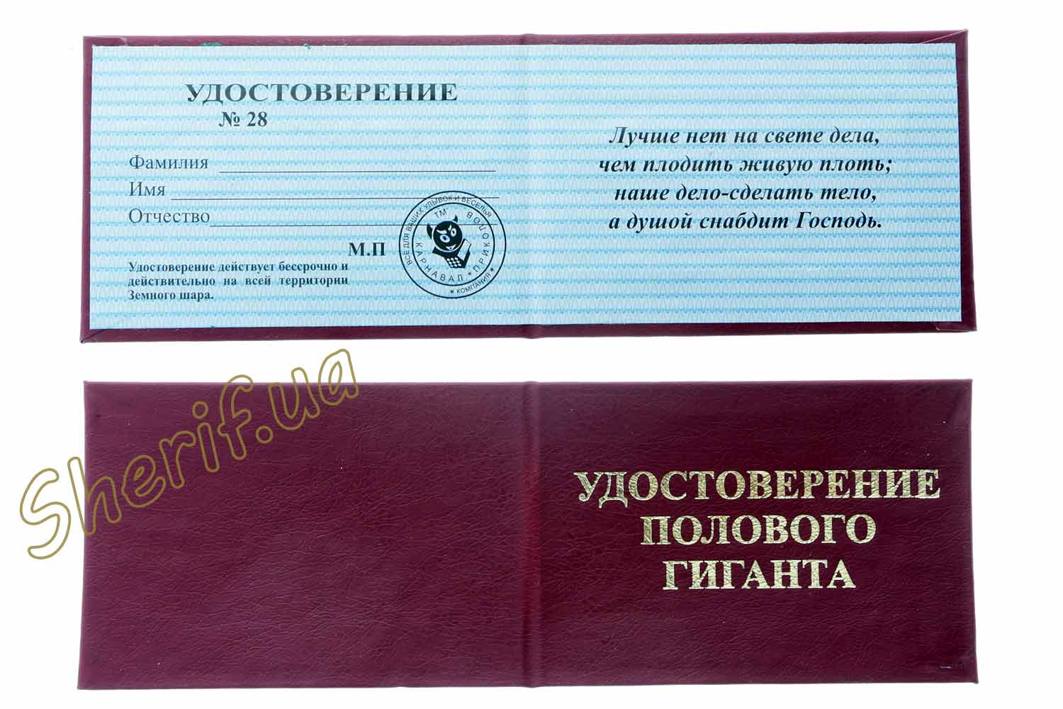 Удостоверение ПОЛОВОГО ГИГАНТА