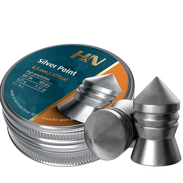 Пули пневматические H&N Silver Point кал. 4.5 мм. Вес - 0.75 г. 400 шт/уп Пули пневматические H&N Silver Point кал. 4.5 мм. Вес - 0.75 г. 400 шт/уп