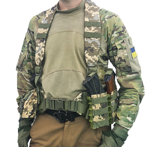 You can buy a RPS pixel with four pouches for magazines, two pouches for grenades, a drop bag and a first aid kit in our online store by clicking on the "quick order" button or by visiting our store. We are in Dnipro and are located at 9 Sichevykh Striltsov str. Call us and experienced sales managers will help you understand the variety of military goods.