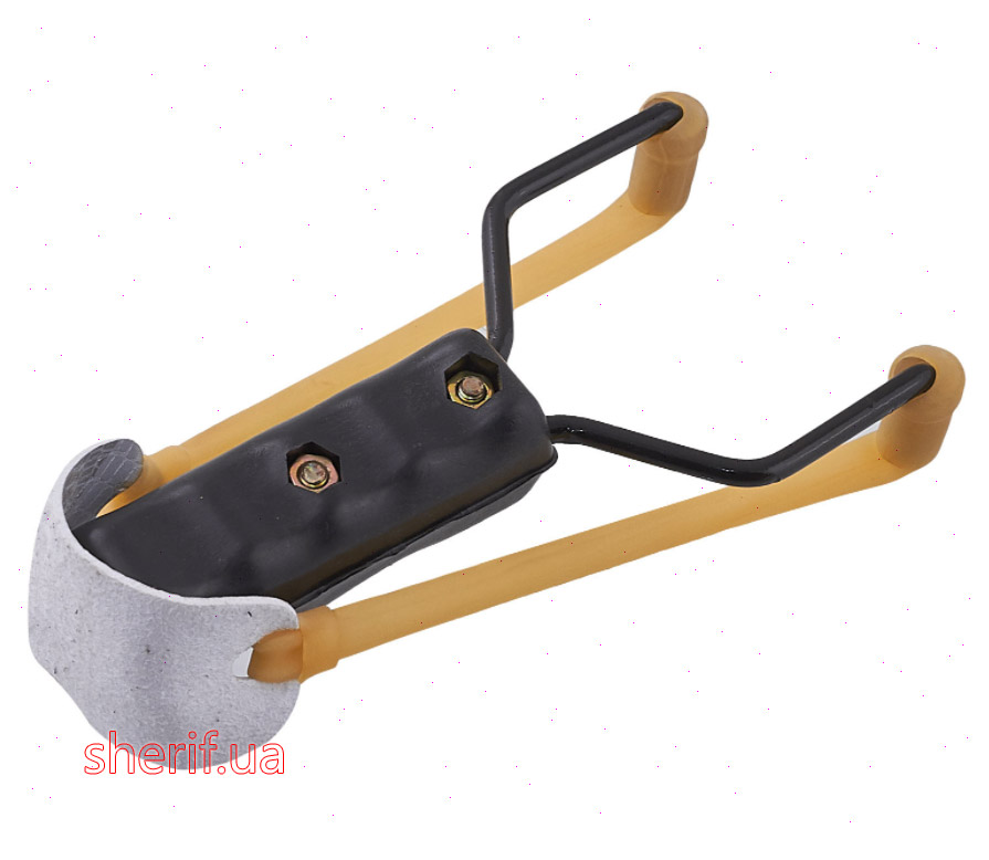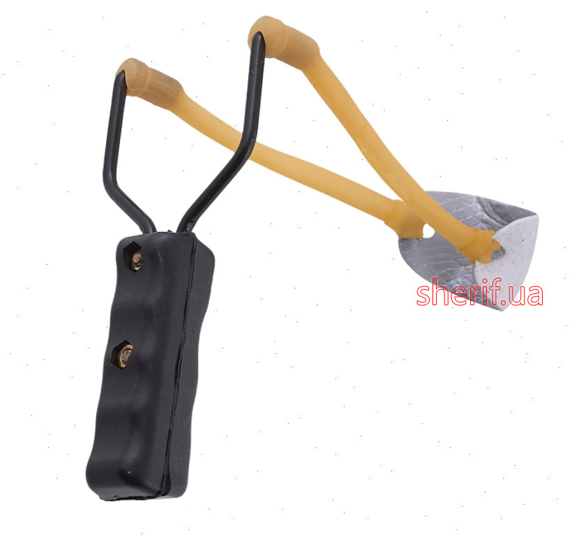 This light (only 53 grams of weight) and compact (140 by 60 mm) slingshot is perfect for casting bait while fishing, as well as for entertainment. The tension of her latex tourniquet is just enough to solve such problems.
