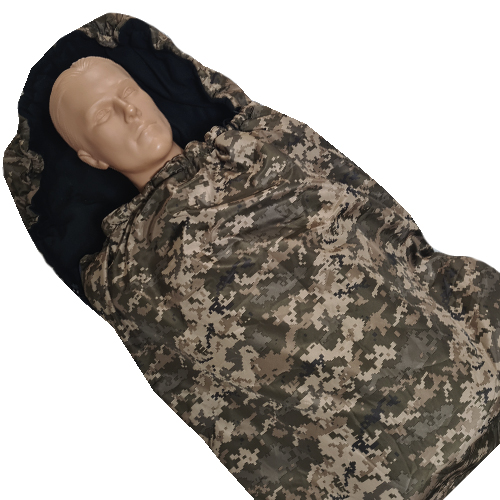 We present you Sleeping bag with a cover, Pixel color, which will become your faithful companion during military tactical operations or campaigns, hunting or fishing. When used, it can also serve as a blanket, mattress for a tent.