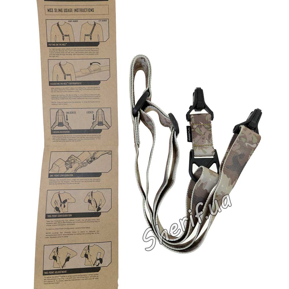 Tactical Sling Magpul MS3 QD AT FG Sling announced by Magpul Industries in 2010. This is a universal belt that can be easily used in both single-point and two-point versions. The belt is easily transformed by a simple rearrangement of the carabiner.