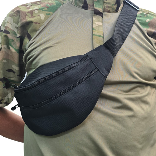 Product description: Compact and modern bag design. Durable adjustable waist belt. Two zip compartments. Perfect for carrying your phone, keys, wallet.