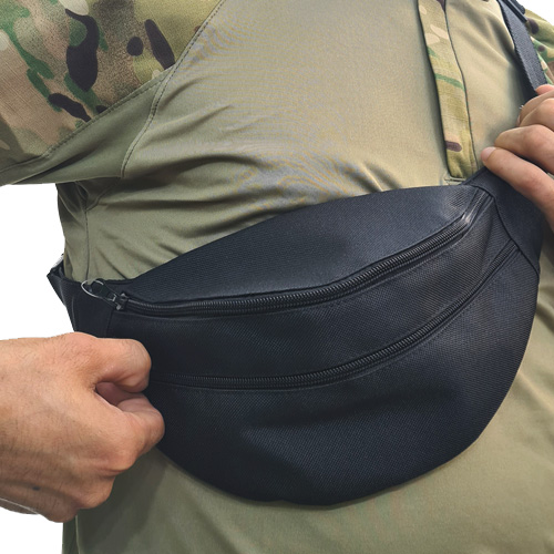 Universal urban multifunctional banana bag made of durable material. Suitable for wearing both on the belt and on the chest or on the back.