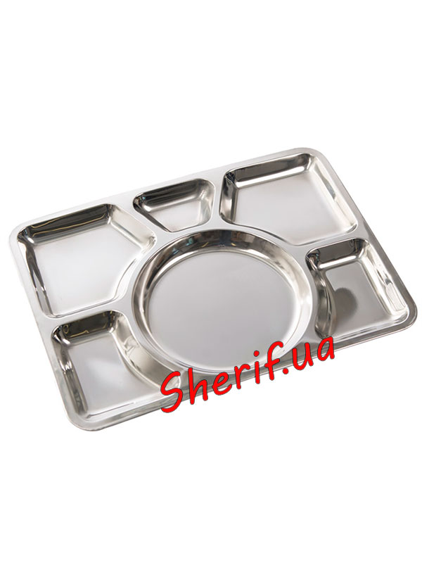 Food grade stainless steel is differentThey are of high quality and environmental friendliness. The Sixfold Dinner Tray won't crack or buckle when dropped, which can happen with plastic cutlery, for example. It is difficult to scratch, unlike aluminum kitchen utensils. Stainless steel is not afraid of exposure to high and low temperatures, as well as contact with water and acids / alkalis contained in products. Thanks to chromium, which slows down the chemical reaction of iron with oxygen, it is not susceptible to corrosion, will retain a shiny metallic sheen for a long time, and will not become stained rainbow stains. The main thing is to prevent mustard, marinades and sauces with a high acid content from drying out on a metal tray.