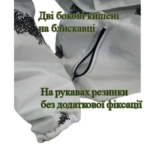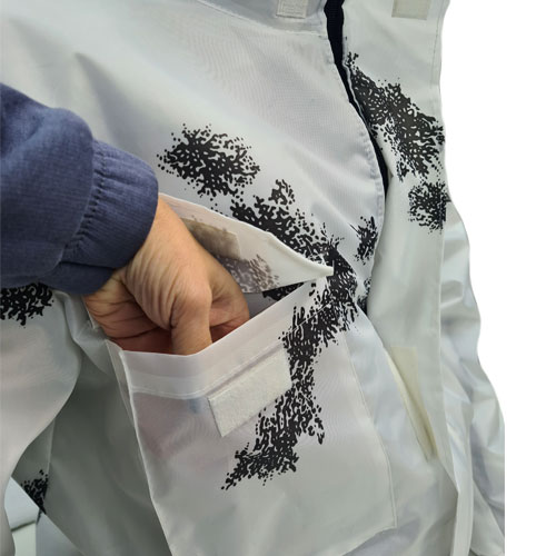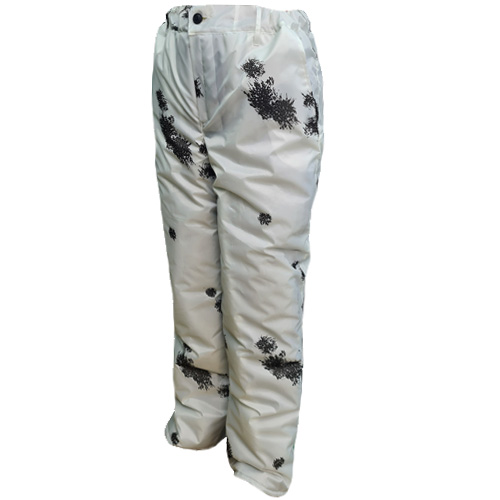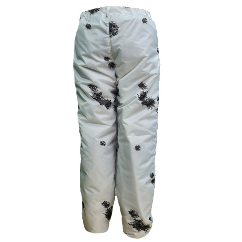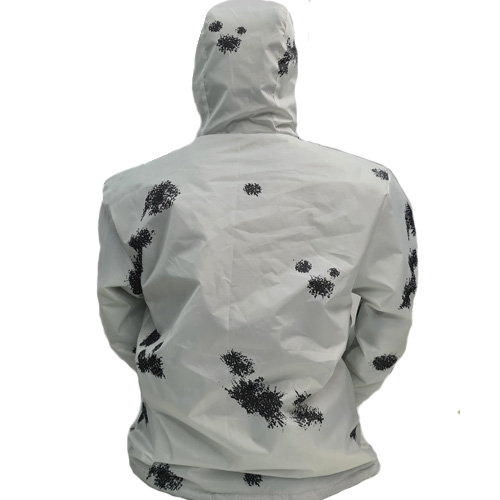 Белый цвет и пятна, напоминающие хвойные веточки, обеспечивают прекрасную маскировку на открытом грунте и в лесу.