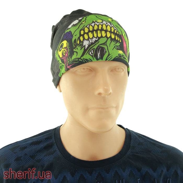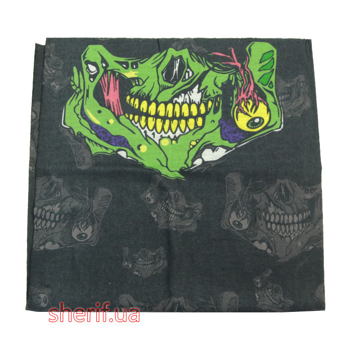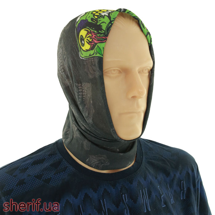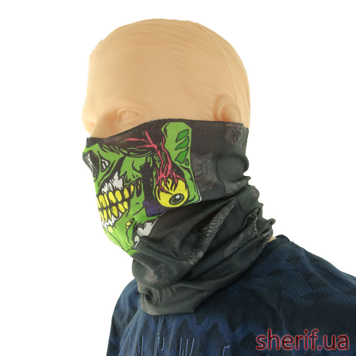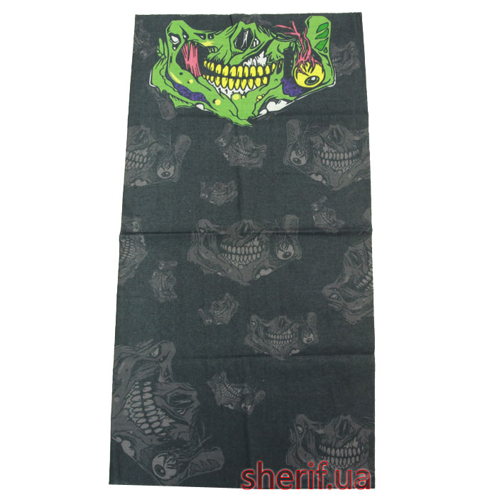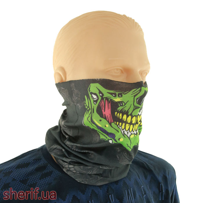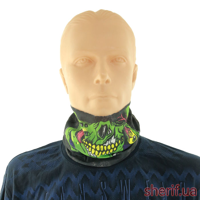 Не пропустіть можливість придбати бафф-маску з малюнком "Череп"в стильному чорно-зеленому кольорі, додавши нотку загадковості та індивідуальності до вашого образу.