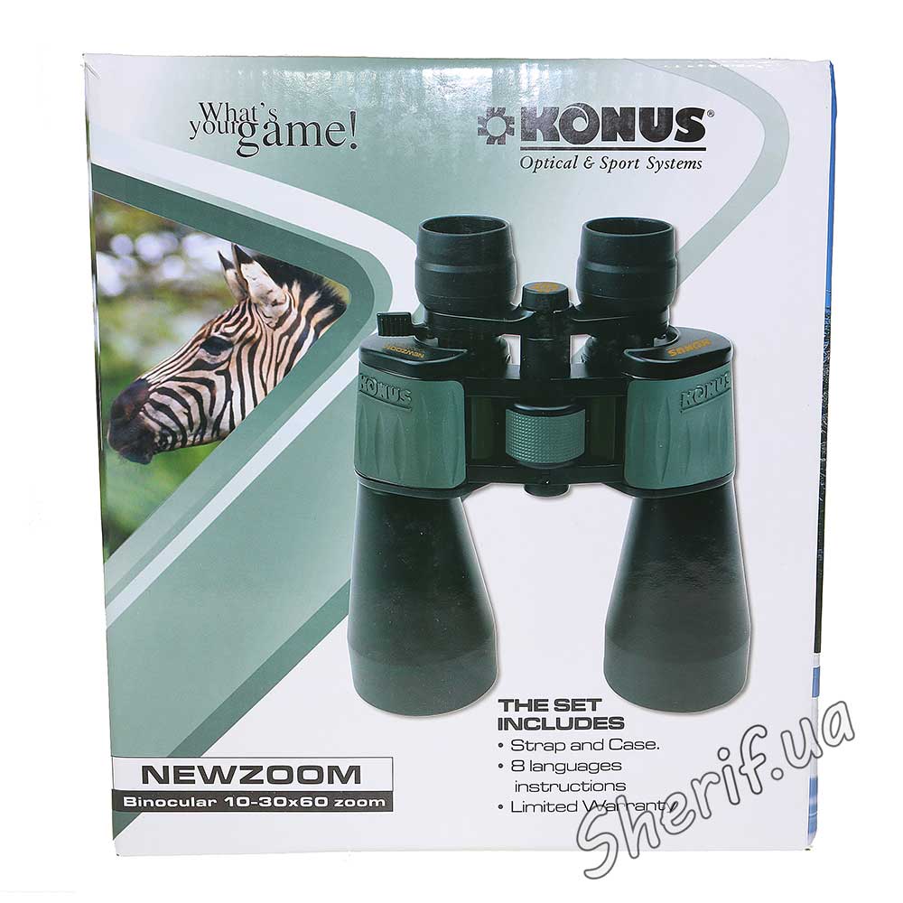 Бінокль Konus Newzoom 10-30x60 – це високоякісний оптичний прилад, який надає надзвичайно чітке та яскраве зображення завдяки своїм потужним можливостям зуму та багатошаровому просвітленню оптичних поверхонь. З його допомогою можна спостерігати за об'єктами на відстані, а також використовувати його в різних умовах завдяки бризкозахищеному дизайну. Бінокль має призми типу Порро, які забезпечують високу якість зображення. При використанні збільшення понад 15-20x, рекомендується встановлення бінокля на штатив, щоб уникнути вібрації через рух рук.