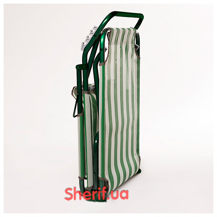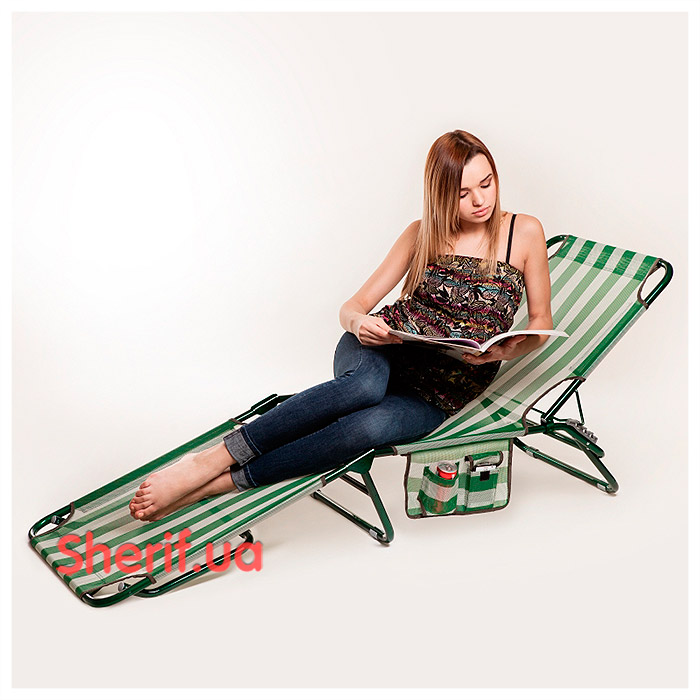 Розкладачка з регульованою спинкою підійде для тривалого та комфортного відпочинку. Компактні розміри у складеному вигляді оцінять усі любителі відпочинку на природі та на дачі.