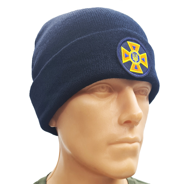 14790 Шапка ДСНС (МНС) в'язана флісова з кокардою (синя) Код товара: 163-215-14790