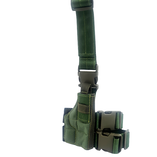 • Кожен стрілець, незалежно від особливостей фігури, легко зможе підігнати кріплення кобури під себе . До стегна чохол зі зброєю пристібається двома широкими резинками, оснащеними фастексами. За рахунок еластичності та регулювання по довжині ремінці не будуть упиватися в ногу і ускладнювати кровообіг. А щоб кобура під вагою зброї не зміщувалась, її додатково можна пристебнути до пояса третім ремінцем, що йде в комплекті. У вигляді петлі він надівається на брючний пояс і з кобурою з'єднується пряжкою-фастексом. Його тривалість також регулюється. Те, що саме фастекси використані як застібки, значно прискорює процес надягання та скидання кобури.