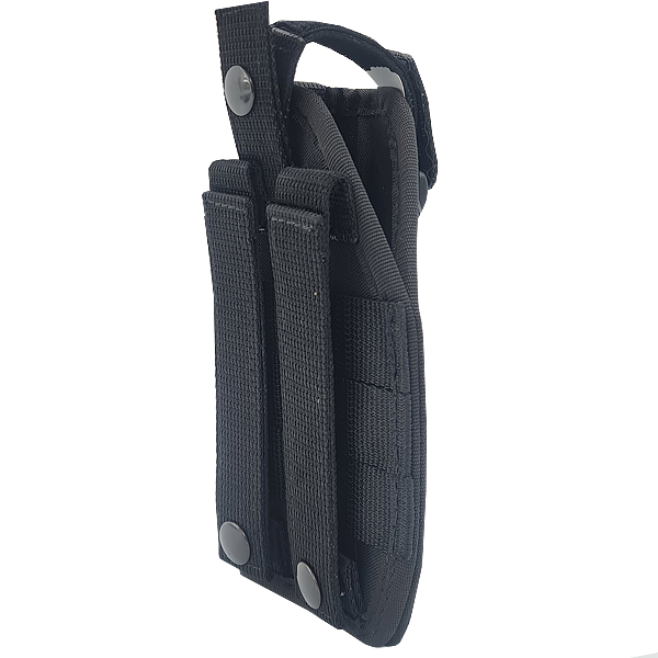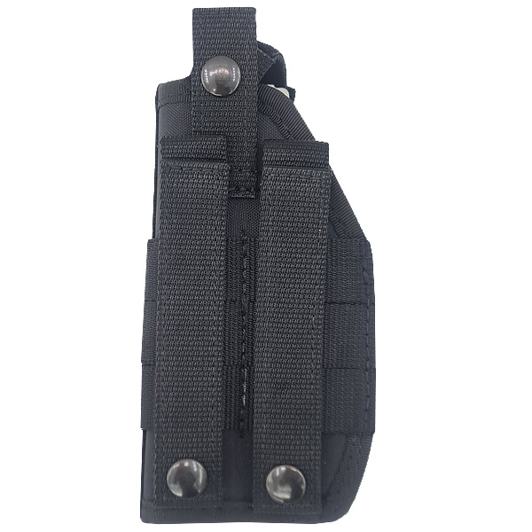 - Дана кобура універсальна відразу за двома параметрами . По-перше, у ній можна переносити зброю різних модифікацій. Днище прошите, так що в чохол увійде дуло різних розмірів. Довжина верхнього ремінця легко змінюється за допомогою двощілистої пряжки та липучки. Те, що застібається він одразу на дві застібки – кнопку і липучку, виключає ризик випадання пістолета з кобури при будь-яких активних маневрах його власника. Інший критерій, що дозволяє віднести кобуру до універсальних тактичних моделей – це наявність кріплень Молле. Вертикальні ремінці на кнопках і горизонтальні петлі зі строп дозволяють закріпити кобуру і на поясі , і на розвантажувальному жилеті , і на ножній платформі – у будь-якому місці, зручному бійцеві.