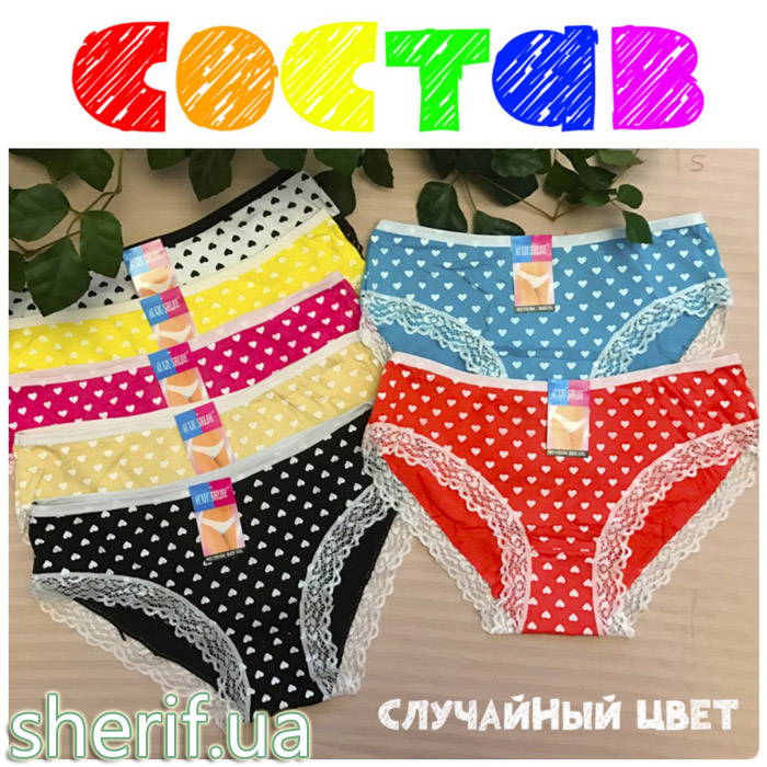 Склад: жіночі святкові труси, універсальний розмір (SL), одна шт, колір і малюнок випадковий.
