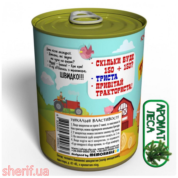 Хоча в Україні немає офіційного світу Дня тракториста, ми вважаємо, що люди цієї професії також мають право на свято. До речі, день працівників сільського господарства відзначається в Україні щорічно у третю неділю листопада, а у Світі 19 червня. У цей день часто працівники аграрної сфери отримують премії та нагороди. Ми приготували до цього дня незвичайний подарунок – Консервовані Носки Найкращого Тракториста. Якщо у вас є знайомий водій трактора, який заслуговує на нагороди, то обов'язково подаруйте йому таку баночку із носками. Гарантуємо - подарунок дуже сподобається і "одержувач" зрадіє.