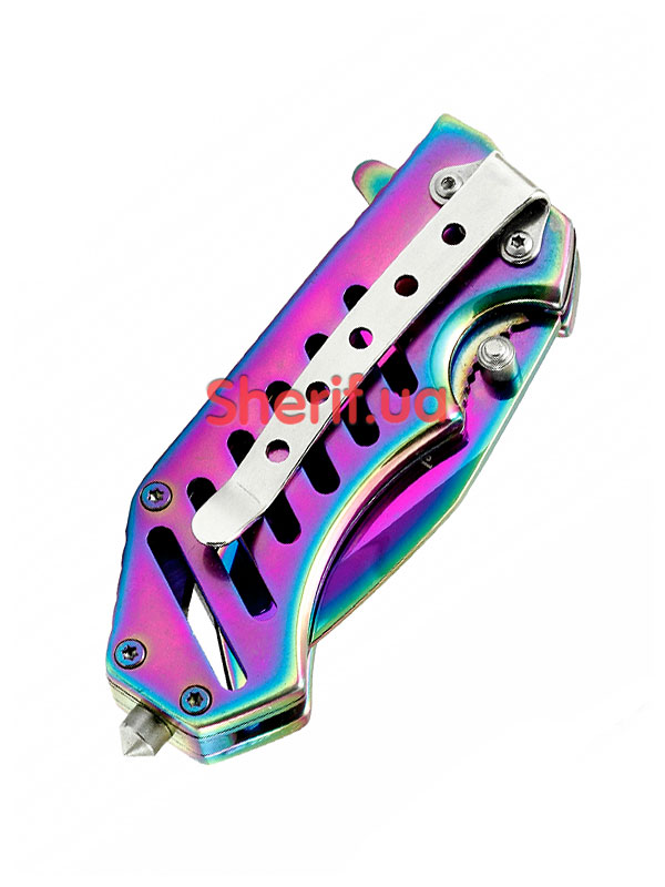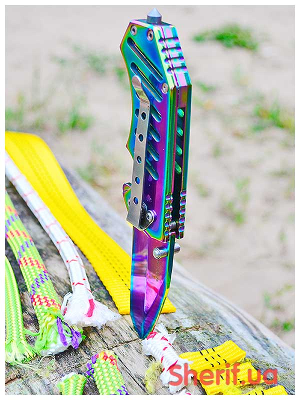 Бронюйте на sherif.ua описану модель ножа із захисною плівкою малинового кольору. Якщо Вам до смаку більш «спокійний» дизайн, зверніть увагу на аналогічний за формою та конструкцією ніж Гранд Вей з чорним покриттям .