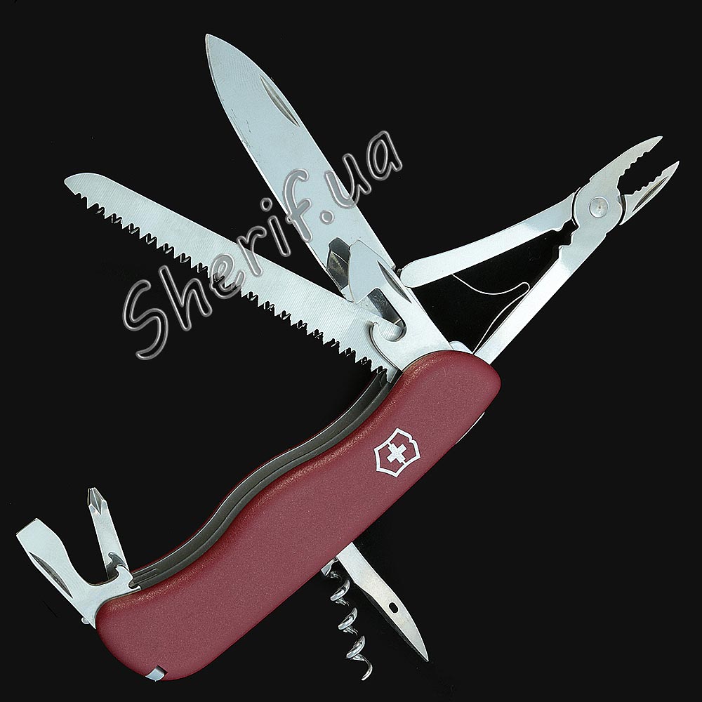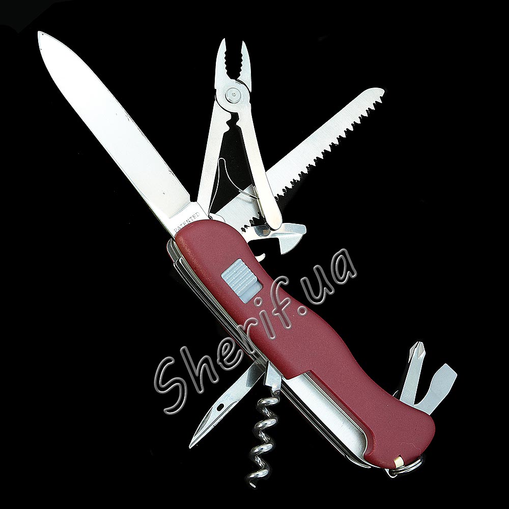 Крім основного клинка, ніж оснащений плоскогубцями (з кусачками та пасатижами), пилкою, консервним ножем -викруткою, викруткою-відкривачем (з пазом для знімання ізоляції), шилом, хрестовою викруткою, штопором, пінцетом, зубочисткою.