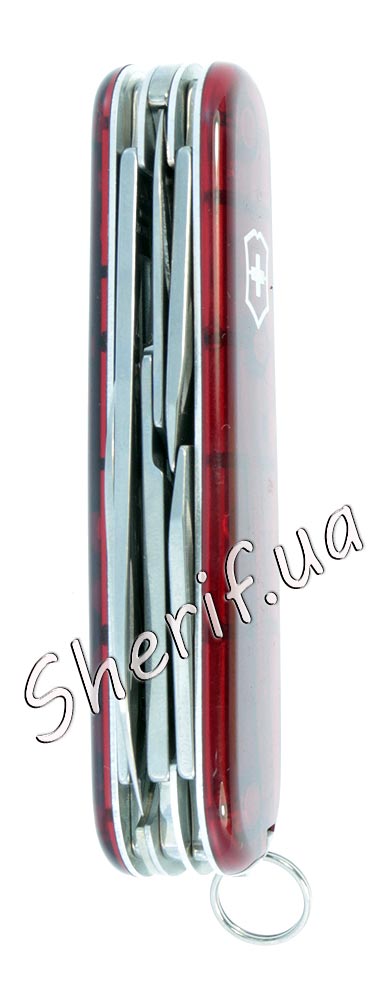 Ексклюзивний та багатофункціональний швейцарський ніж Victorinox Climber 1.3703.T у презентабельному дизайні – чудовий подарунок для сильної половини людства. Оснащень головними та найнеобхіднішими інструментами. В арсеналі складного набору ріжучі велике та мало леза. З ними Ви зможете виконати безліч робіт, наприклад, очистіть та наріжете фрукти. А ось консерви та пляшки Вам відкриють спеціальні відкривачки. Будь-яку пробку витягне штопор. При цьому складний набір стане Вашим відмінним "другом" у ремонтах. Адже містить шило, пристосування для зняття ізоляції, а також викрутки, які легко закрутити та викрутити кріпильні вироби у найважкодоступніших місцях. Спеціальний крючок допоможе Вам у багатьох цілях, наприклад підняти важкі предмети. Чудово доповнюють цю модель ножиці та пінцет із зубочисткою. Також варто відзначити і прозрачну яскраво-червону рукоятку, яка припаде до душі кожному чоловікові. Також складний ніж виконаний виключно із високоякісних матеріалів.