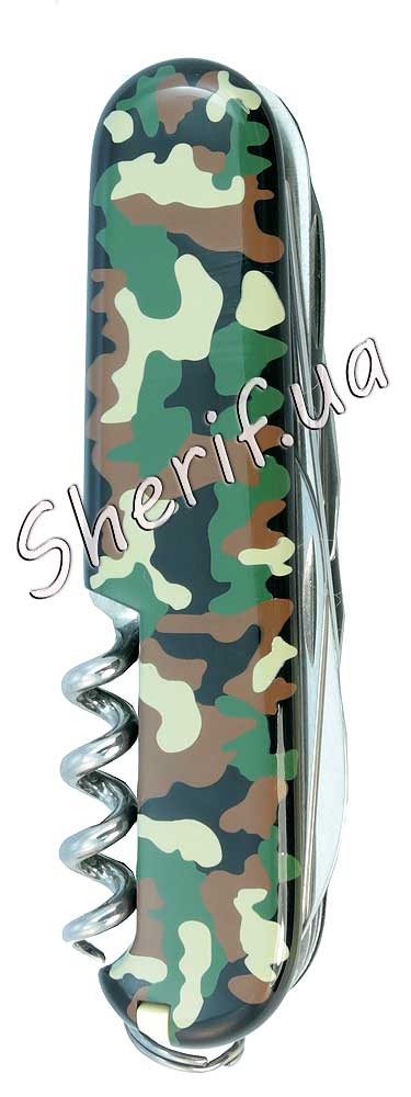 Victorinox Huntsman 1.3713.94 – унікальний, високоякісний швейцарський ніж. В першу чергу, чудово підійде для роботи з деревом. Адже містить добре ріжучу пилку. Інструмент зрідже гілки та розпиляти невелике дерево. При цьому не клинити в деревині, що дуже важливо для більш легкої роботи. В арсеналі складного набору і чудово ріжучі великий і малий клинки. З ними Ви, безумовно, виконаєте всі необхідні роботи. За рахунок штопора та спеціальних відкривачок для консервів та пляшок, Victorinox Huntsman 1.3713.948 виручить Вас у будь-якій подорожі. Тоді, як у ремонтах знадобляться пристосування для видалення ізоляції, а також шило та викрутки, які легко закручують та відкручують кріпильні вироби. Оснащено ексклюзивну модель і спеціальним багатоцільовим крючком, а також ножицями та пінцетом. Складний ніж Victorinox Huntsman 1.3713.94 виготовлений із нержавіючої сталі з високоміцними пластиковими елементами на рукояті. Тому надійний і довговічний. Також стійкий до пошкоджень і навіть дрібних потертостей. Плюс, виконаний у оригінальному камуфляжному кольорі.