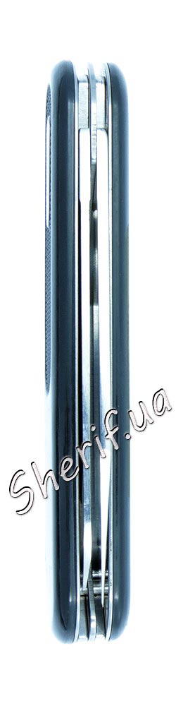 Крім основного клинка з гладким лезом зі сталі марки 440SS, має 2 викрутки: плоску та хрестоподібну.