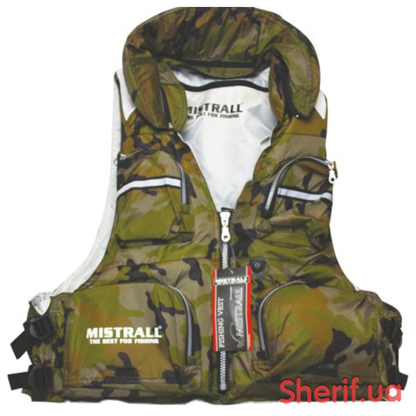 Жилет рятувальний від компанії Mistrall, з функцією два в одному - дана модель поєднує в собі функції рятувального жилета, що плаває, завдяки знімним плаваючим вставкам і коміру, в той же час, жилет оснащений численними, досить місткими кишенями і цілком може впоратися із завданням розвантажувального жилета.