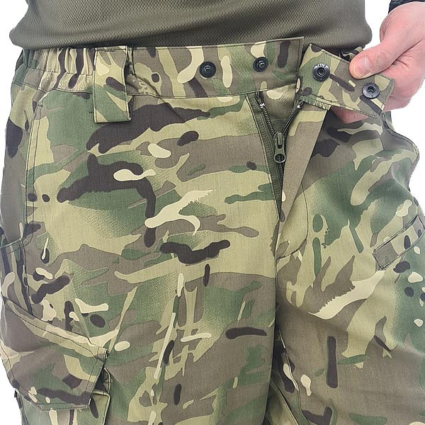 Штани мають високу талію, застібаються спереду на кнопки та блискавку. Мають також безліч кишень різного обьєму, виточки на колінах та наколінні кишені для додаткового захисту наколінниками або демферними підкладками. Без підкладки. Низ регулюється липучками по об'єму для захисту від потрапляння пилу.