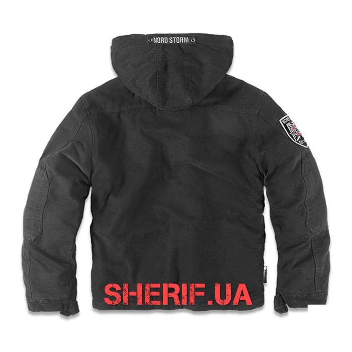 На лівій верхній кишені представлена нашивка на велкро з написом Nord Storm. Праворуч у бічний шов куртки встрочено лейбл із найменуванням торгової марки.