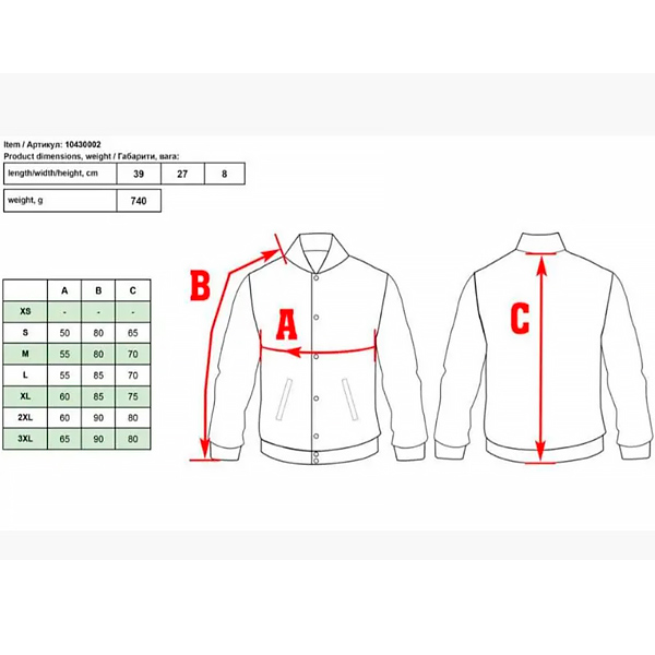 Склад матеріалу: Рукава, комір: 100% нейлон; середня частина: 100% поліестер; Манжети: 90% поліестер, 10% еластан.
