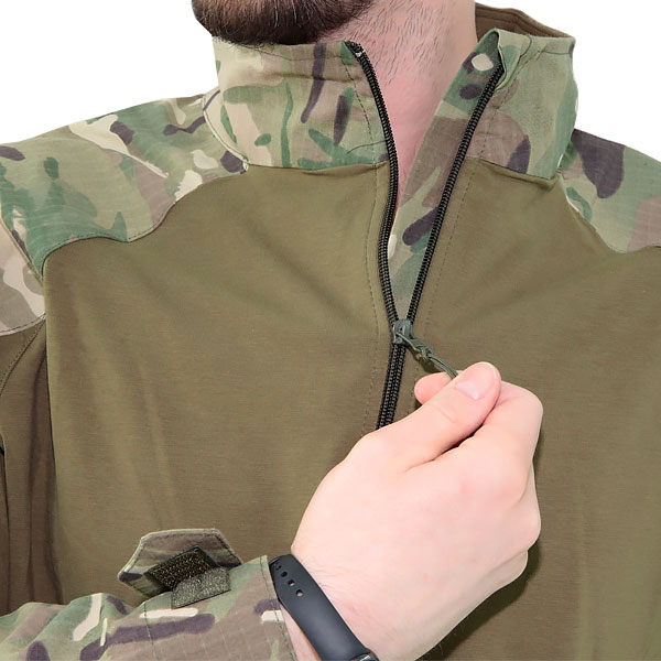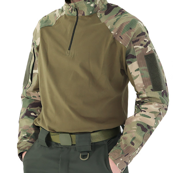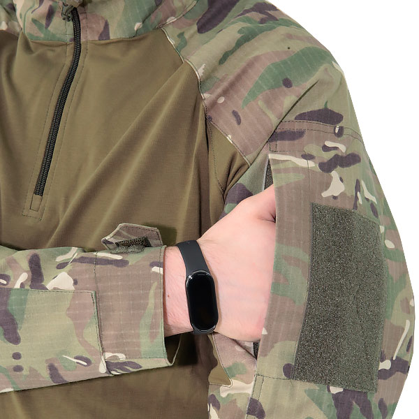 Тканина, з пошита сорочка - це поєднання стрейч куліру та ріп-стоп. На рукавах для посилення міцності використовують міцну ріп-стоп тканину. Спереду та сзаду стрейчова тканина, яка дозволить зручно носити рюкзак та розвантажувальний жилет. Використання високоякісних матеріалів забезпечать тривалу службу та зручність носіння. Фурнітура використовується високої якості, стійка до зносення. Тому, в цілому виріб буде слугувати довго.
