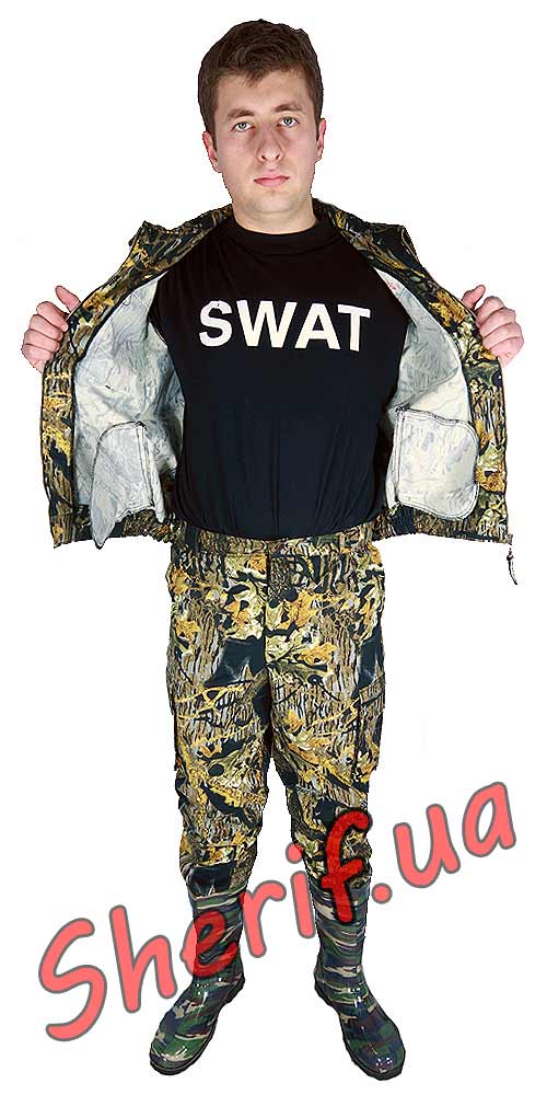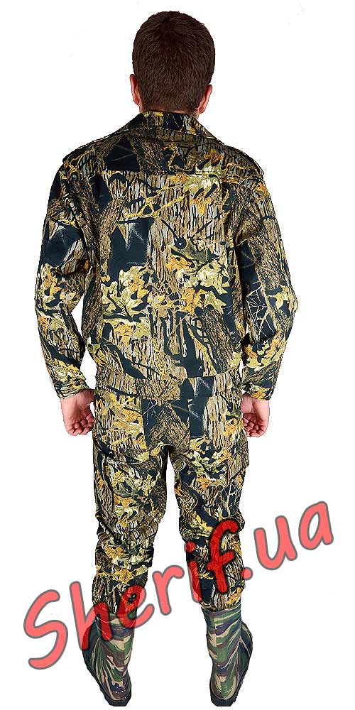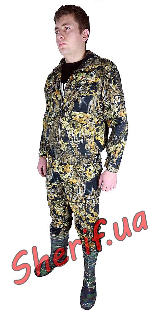 Цей костюм сподобається любителям полювання та дозвілля на природі, велика кількість кишень дозволяє взяти багато корисних дрібниць (6 на куртці та 6 на штанах). Забарвлення тканини, що наслідує лісовий ландшафт, розмиває силует людини фоні дерев. Зовнішня тканина "Саржа" непродувна та вологовідштовхувальна. Курточка на блискавковій застібці, з погонами на кнопках, манжетний рукав з кнопкою, внизу куртка стягується гумовою вставкою. Штани мають шлейки під ремінь.