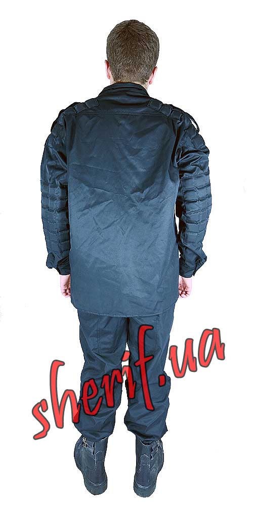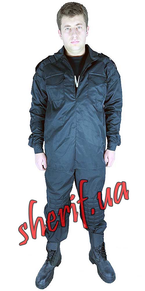 Костюм є курточкою прямого крою на блискавці, в одну третину довжини куртки, з парою об'ємних кишень, розміщених на грудях і закриваються на клапана з липучою застібкою Velcro і одним на рукаві, а також прямих штанів, що застібаються блискавично-гудзиковим методом, з двома розрізними кишенями. У поясну частину штанів вшита гумка, що тягне, і є шлейки під ремінь. На плечових, ліктьових і колінних ділянках вшиті пом'якшувальні елементи.