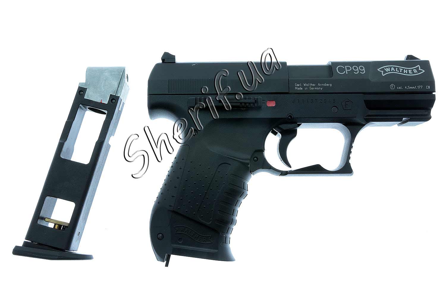 На вигляд ви напевно відразу дізнаєтеся, як поціновувач зброї, що перед вами майже реальний пістолет знаменитого агента Джеймс Бонда, модифікований під пневматику. Важливо, що це головна його цінність. Зброя має низку сильних переваг: цільносплавна рукоятка, легкість експлуатації, найвища якість виконання. У руці, завдяки своїй досить великій вазі, відчувається як серйозна зброя, але тримати її комфортно і зручно. При підборі куль краще вибрати важкі екземпляри. За рахунок укороченості будови ствола, вони будуть здатні розвинути сильніше швидкість і силу. Ви залишитесь абсолютно задоволені, якщо вирішите купити Walther СР99 і зробити це можна легко у нас.