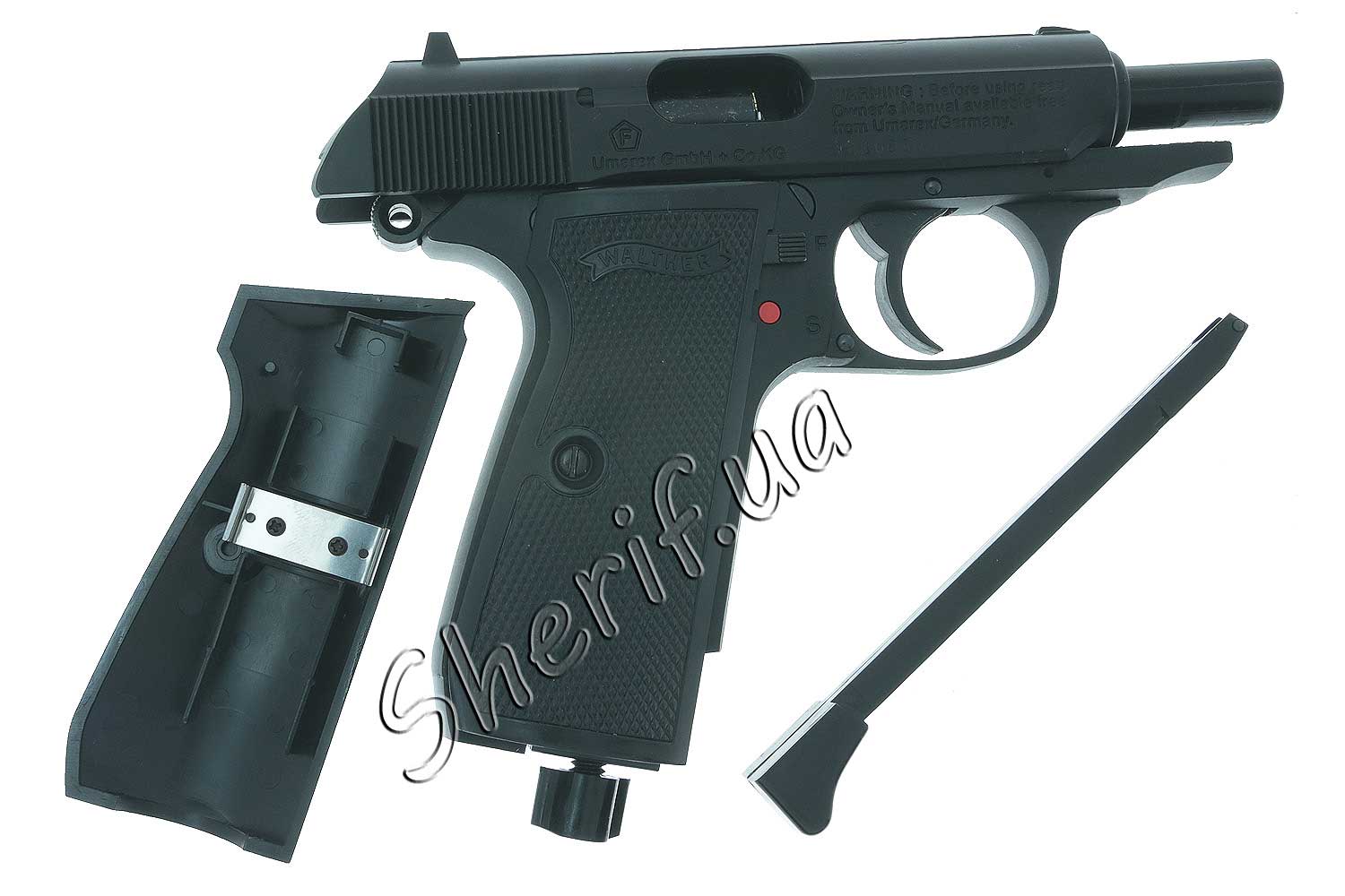 Особливістю моделі є характерний помах ствола вгору при пострілі за рахунок імітації автоматики і це при скороченій будові ствола. Здійснюється це завдяки механізму подачі газу з балону не тільки в сам ствол, а й у затвір. Зарядити зброю не складе труднощів, все просто: магазин легко виймається, балон проколюванням винта так само без труднощів вміщується всередину виробу. Виходячи з усього цього, пневматика ідеально підійде для допомоги відточування навичок вправним стрільцям та набуття азів цього мистецтва навіть самим недосвідченим. Можете купити Umarex Walther PPK/S , і вас безмірно потішить німецька якість збірки, і безсумнівна надійність та визначено довговічність роботи.