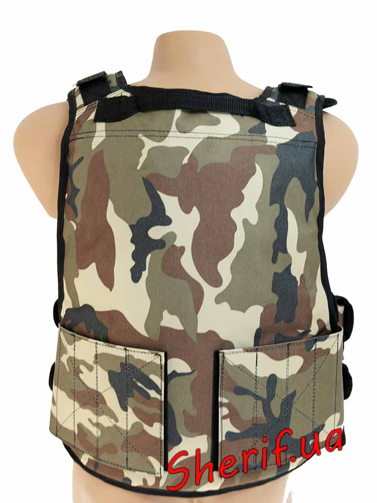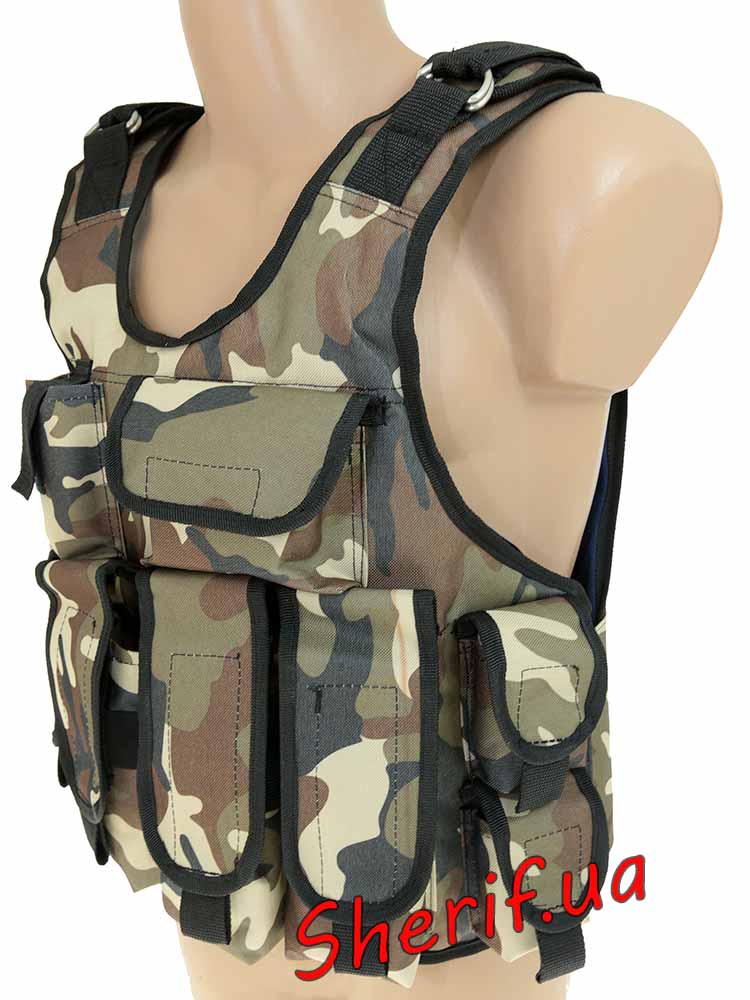 Жилет має нейтральне камуфляжне забарвлення в коричнево-зеленій гамі, що робить його практично універсальним для маскування. Інтернет-магазин sherif.ua також може запропонувати Вам бронежилети 4-го та 2-го класу захисту на базі розвантажувального жилета WDL.