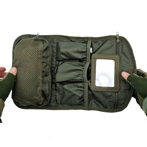 - Ви отримаєте портативне настінне дзеркало . Невелике дзеркало всередині підсумку зафіксовано за допомогою застібки-липучки. Щоб поголитися в поході, підвісьте несесер на гачок, розташований по краю виробу. У такому разі Вам не потрібно буде тримати дзеркало у руці. Хоча, якщо знадобиться, його можна легко зняти. Виготовили дзеркальце з матеріалу, що не б'ється, тому удари і падіння йому не страшні.