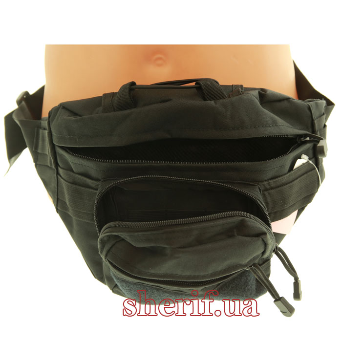 - Вона звільнить руки, Ви зможете відмовитися від борсетки та громіздкого гаманця . Гроші, кредитки, мобільний телефон, водійські права , канцелярські приладдя та інші необхідні речі не потрібно буде розподіляти по карманах. Поясна сумка "бананка" дозволити все зібрати в одному місці. Щоб не порпатися щоразу в основному відділенні у пошуках того чи іншого предмета, передбачено кілька карманів з окремими входами. Стропи Молле і верхня утяжка дають можливість збільшити місткість сумки, закріпивши зовні речі. Утяжка, наприклад, зручна для фіксації кепки .