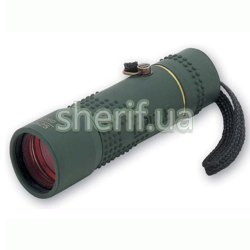 - Прилад маленький, ідеально підійде для походів, спостереження за спортивними подіями, для подорожей. Його можна заховати в карман або закріпити на зап'ясті за допомогою ремінця, що постачається в комплекті. Також монокуляр можна переносити в його «рідному» чохлі, який закривається клапаном на липучці і має шлівку для підвішування на пояс.