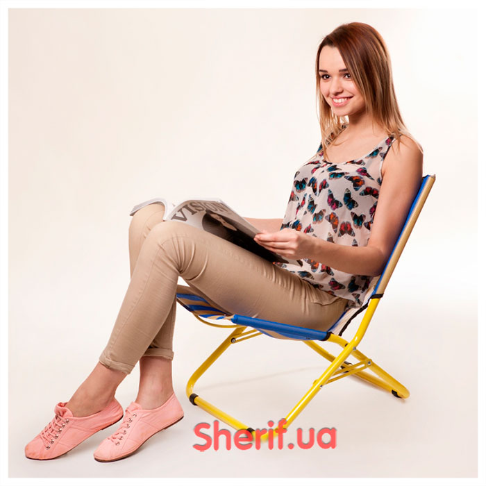Шезлонг складається одним рухом, що займає мінімум простору у складеному вигляді.